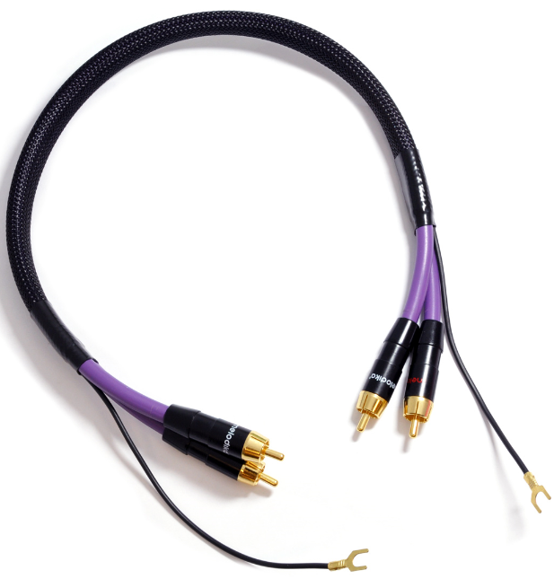 Hochwertiges Phono-Kabel inkl. Erdungskabel, mit massiven, 24 Karat vergoldeten, und farblich markierten Vollmetall-Chinch Steckern.